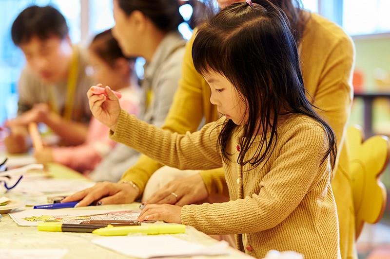 This bright, whimsical, forest-themed center for children features hands-on activities and programs surrounded by captivating creatures.